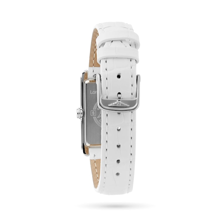 - Rectangular stainless steel case set with 46 glistening diamonds