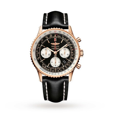 This Navitimer model boasts a 43mm 18K red gold case presented on a classic, black leather strap.