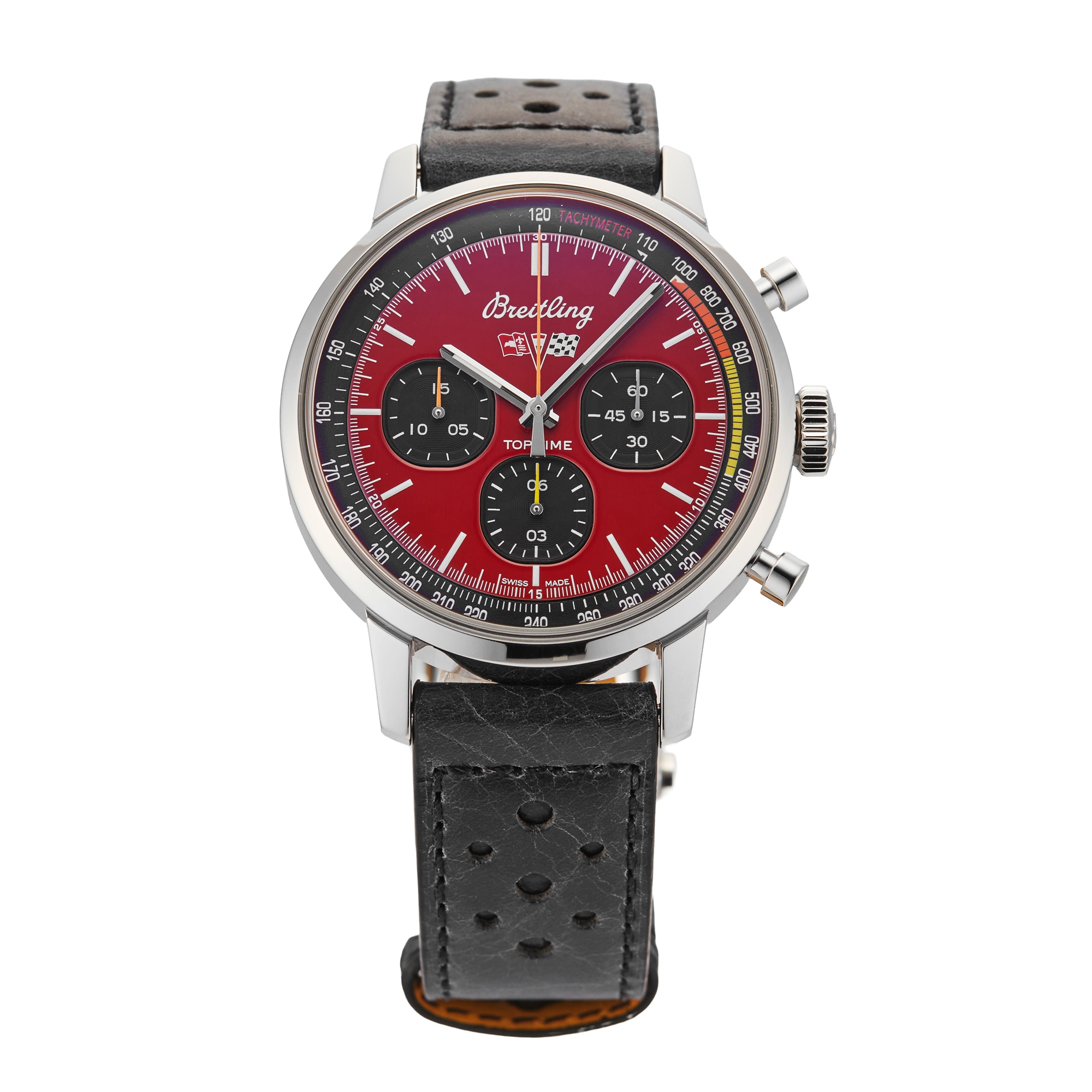 This Pre-Owned Breitling Top Time Chevrolet Corvette 42mm Stainless Steel A25310241K1X1 features a 42mm Stainless Steel case, showcasing a Red dial and sapphire crystal glass. Powered by a Automatic movement, this impressive watch also showcases a Leather strap finished with a Deployment Clasp for increased security. This timepiece is also water resistant to 100 metres.