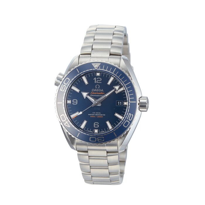 This Pre-Owned Omega Seamaster Planet Ocean Mens Watch features a 43.5mm (approximate size) stainless steel case fitted with a blue dial, sapphire crystal glass and a date complication.
