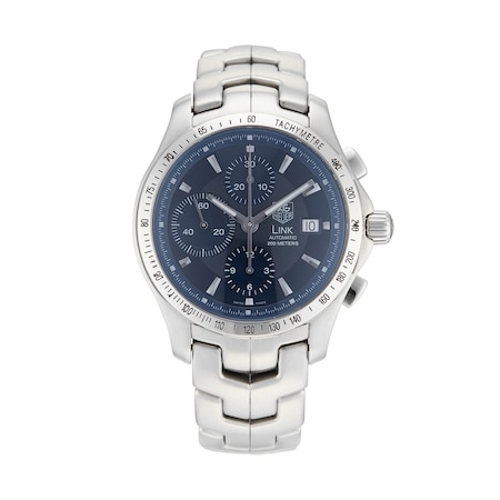 This Pre-Owned TAG Heuer Link Calibre 16 Men's Watch CJF2114.BA0594 features a 42mm stainless steel case fitted with a blue dial, sapphire crystal glass, a date and a chronograph complication.