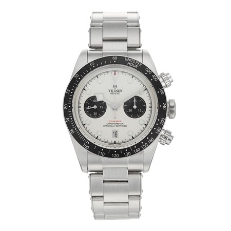 This Pre-Owned Tudor Black Bay Chrono Mens Watch M79360N-0002 features a 41mm (approximate size) stainless steel case fitted with an opaline dial, sapphire crystal glass, a date and a chronograph complication.