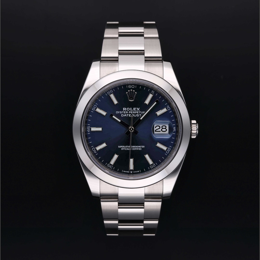 This 41mm Oystersteel model features a smooth bezel and a blue dial. Powered by the calibre 3235, it offers a 70-hour power reserve. The Oyster bracelet with Easylink clasp ensures comfort and adaptability.